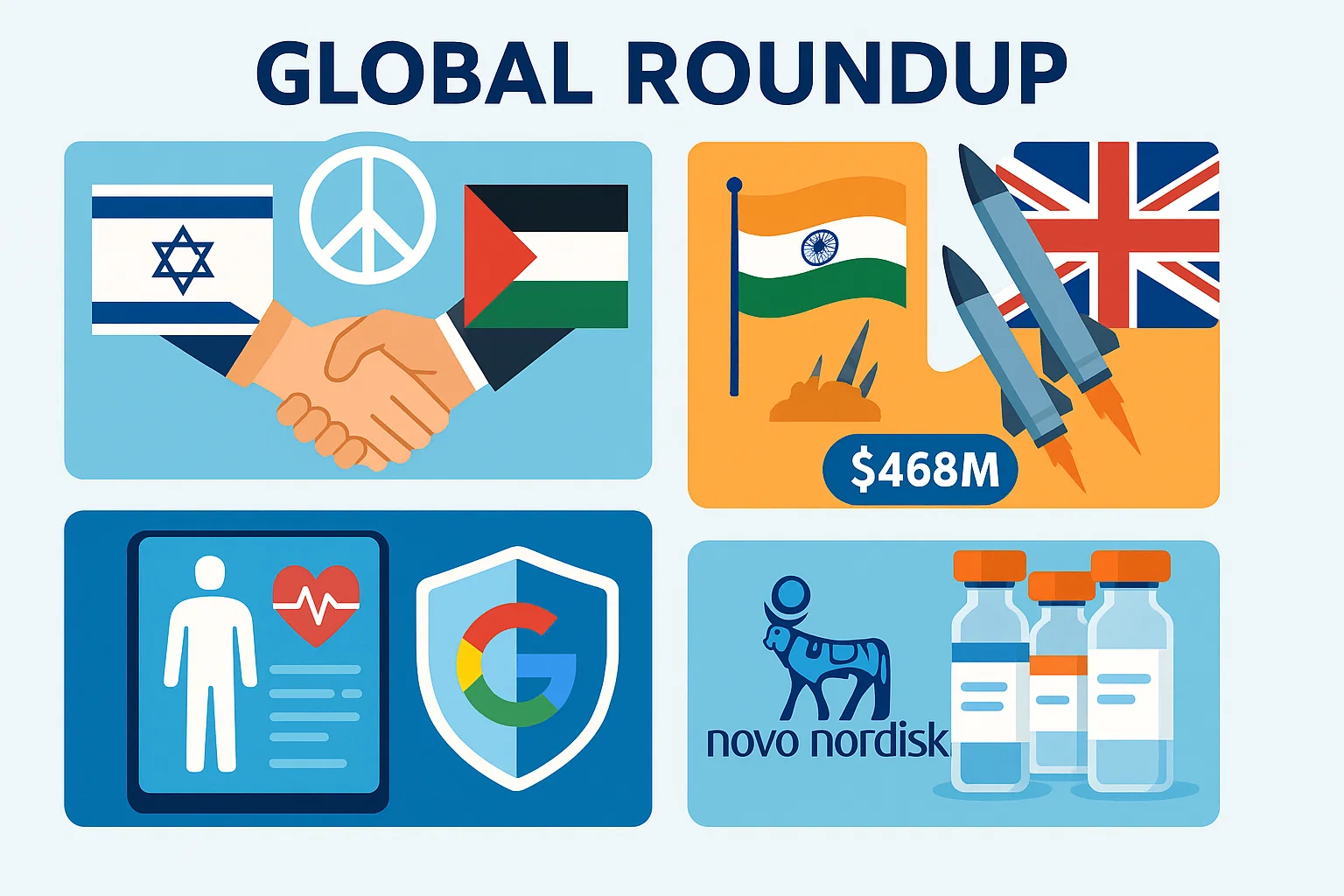 Israel and Hamas have agreed to a ceasefire, India and the UK are teaming up on a massive missile deal, Google is rethinking its AI health tool after employee pushback, and Novo Nordisk is making a $5.2 billion acquisition to expand beyond obesity treatments.